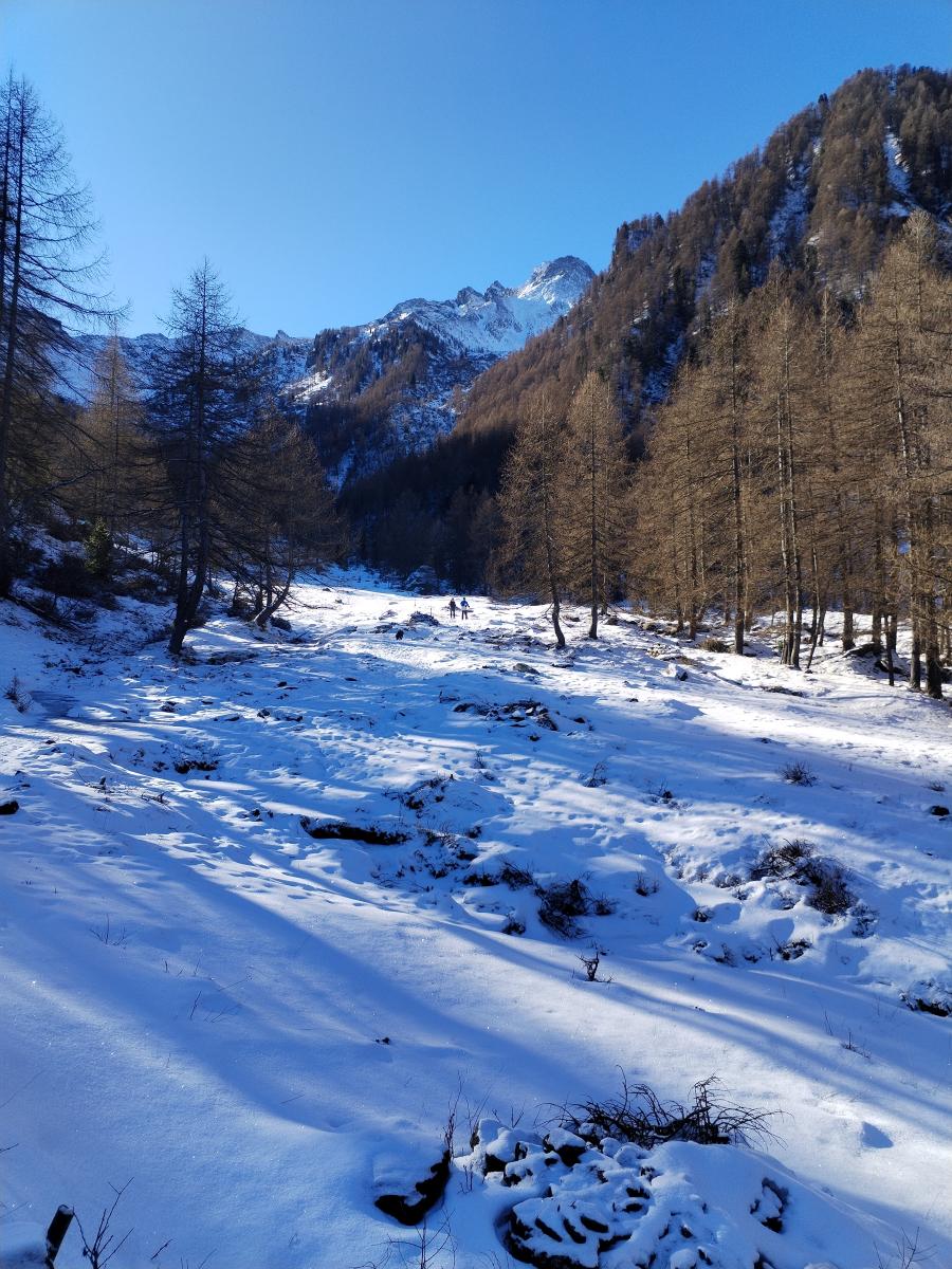 Il percorso invernale al Rifugio Toesca è più lungo rispetto a quello estivo poiché l’ultimo tratto di strada, dalla frazione Città al Paradiso delle Rane, viene chiusa al traffico. Il sentiero è solitamente ben battuto durante i periodi di apertura del rifugio, sono sufficienti dei ramponcini, ma per sicurezza consiglio sempre di chiamare preventivamente il rifugio.